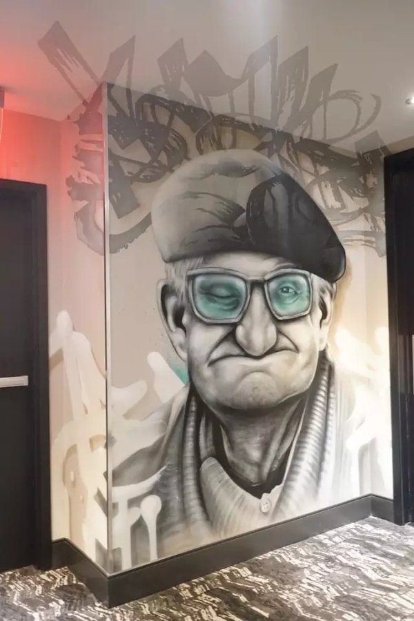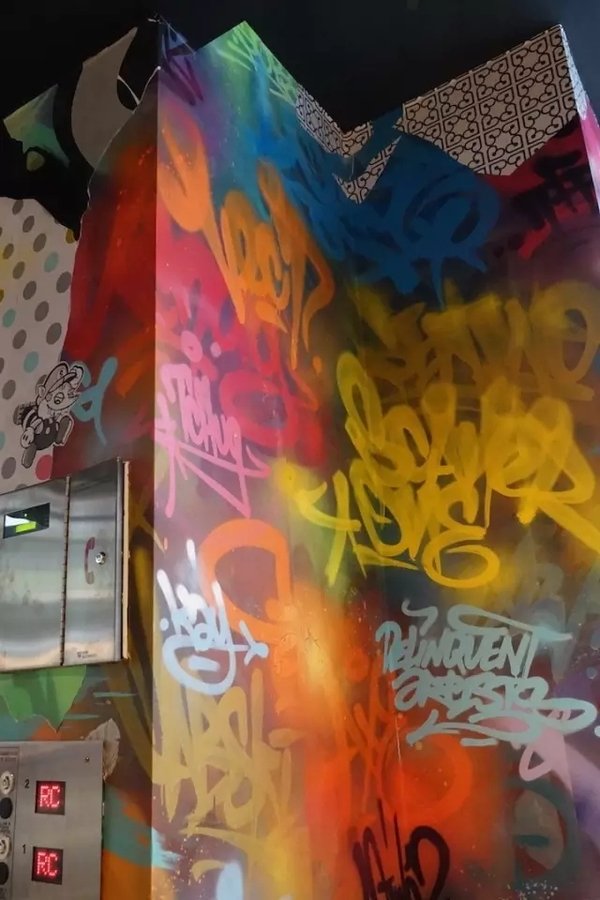 涂鸦遍布在公共空间的各个区域和细节里。因为文化冲击的关系,蒙特利尔整个城市都充满了各式各样的街头涂鸦,其实这家酒店的装修灵感,是正正和这个城市的名片相呼应的。