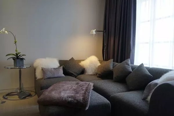 客房沙发用色是高级灰,面料强调的还是放松的质感。