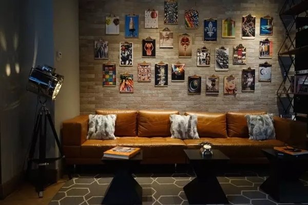 这家精品酒店最大的特色在于它的艺术氛围。整个酒店的公共空间布满了同一位或几位艺术家的作品,隔一段时间一换,让整个酒店时刻保持统一的艺术风格与新鲜感。像花花去的时候,就是一位蒙特利尔本土摄影师的作品,讲述明星台前幕后的片段。