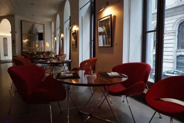 酒店大堂不大,同时兼容了餐厅、酒吧和会客区的职能。