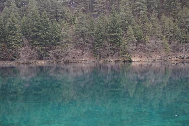 树正海之后还有几个小景点,我就不赘述了。直接跳到火花海!!树木影射在海子中如火花般绚丽!!!啊!好想秋天来看最美的时刻!!!