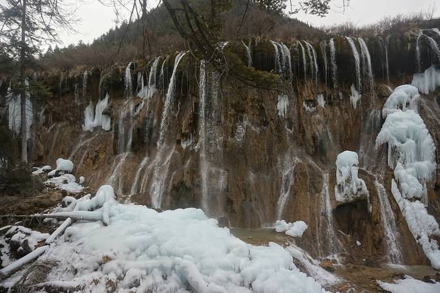 冬日的熊猫海会结冰!!而且会有一些颜色的渐变~不过熊猫海瀑布也完全结冰了。