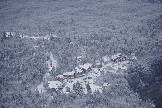 下山前往索道的路上,依旧是各种惊艳我们的美,俯瞰白雪之中的寺庙,尤为庄严神圣。