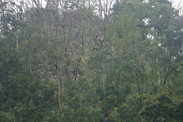 终于,跋山涉水来到猴区。。。累。。。但是,猴子上午都喂饱了,都躲在对面悬崖的树梢上。。。下次来还需要带望远镜,我都是拿了自己的远焦镜头在拼命找猴子。。。早知道给路上的猴子多拍几张照了TAT所以,要去得早上去。。。