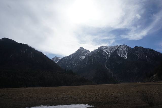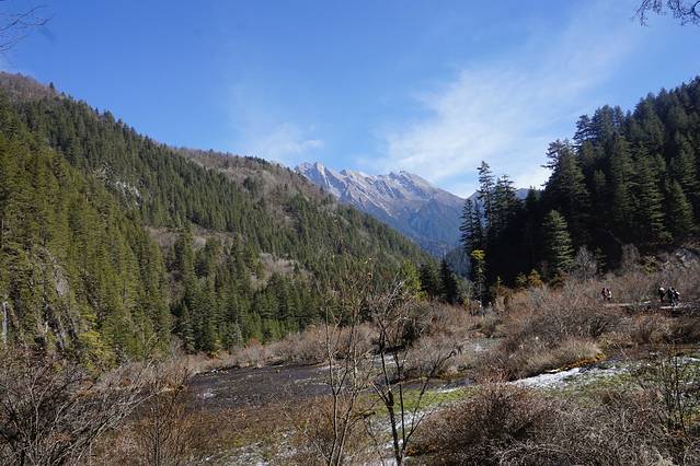 到达九黄机场后,还需要1h30min左右的车路,我们是提前酒店包车的,所以很靠谱。一路上的风景作为一个天天看钢筋水泥的我来说心中一直在狂喜乱舞——广阔的天空,雪山连片,各种层次的植被,即使是冬日,也是充满生机的自然。