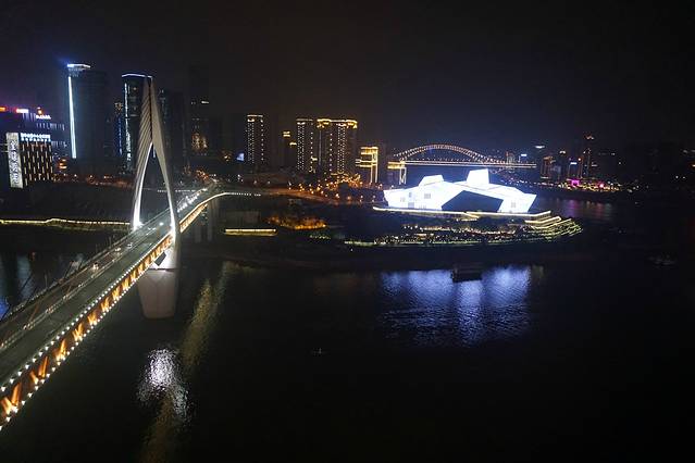 2月2日,大年初六。因为从重庆转机九寨沟便宜,所以当时买了重庆转机的机票,顺便欣赏一下重庆的夜景。本来是想去看洪崖洞的夜景的,结果到达时间太晚,灯都关了,所以很遗憾的没有看到。但是,看看江景也是很美。一路上就闻到浓郁的火锅味,果然是以火锅为生的城市和人啊。