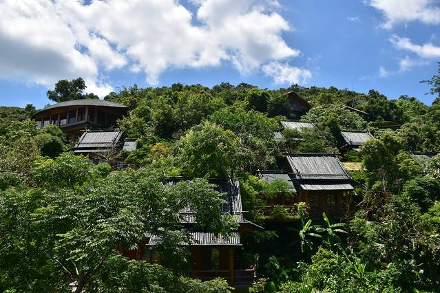 导游就请了一个向导,我后面几天都是,导游请了个向导他就功成身退了,向导是个女的,教我们打招呼,怎样称呼人,槟榔谷里面只有80岁以上的老人才可以住,而且是国家养他们,但是他们看上去没有80岁,白头发没有很多,也有黑发,还可以织布,向导介绍了黎族的各种东西,比如这里是母系社会,为什么这里的房子是这样的,风土人情都介绍得很清楚。