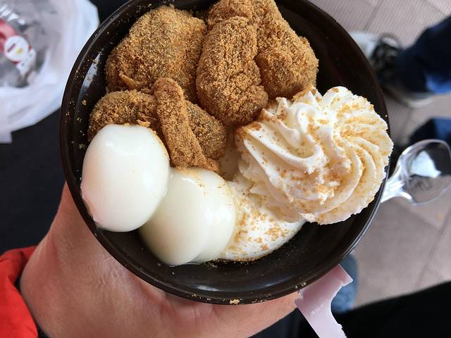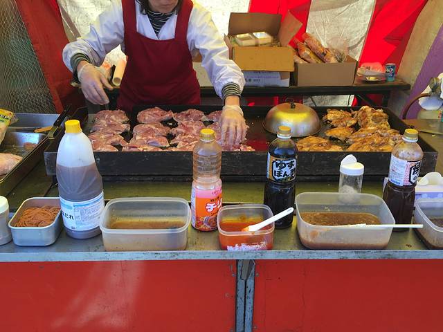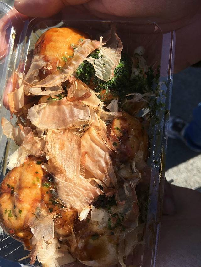 朝拜后,在寺庙内转了一下,买了小吃,真材实料。这是章鱼小丸子的制作,新鲜得很!
