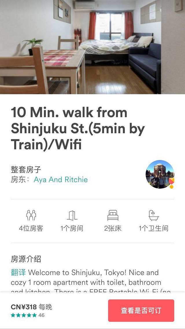 二、酒店的预订:以前出国的酒店都是在携程、booking、艺龙、雅高等网站上进行对比,找适合自己的经济型住宿,哪个网站性价比高就在那里订,不过以前一般在booking上订的比较多。有一次聚会同学听说我准备去日本,于是推荐了一个APP:airbnb,这是一个民宿预订网站,在签证没出之前就一直观注,挑选了很多家住宿放进心愿单里面。根据以往经验,越靠近出发日期,住宿可选择数量越少,而且房费也会提高,但在airbnb预订时发现地段好的住宿位置被预订的比较快,但价格变化不大。真心觉得自由行还是需要提前做一些功课的,在网上看过别人的攻略,大家喜欢把住宿订在东京的新宿区,这里热闹繁华。因为从来没有去过,所以在预订房间时,在网上下载了一个东京地铁图,根据airbnb上的介绍,做好记录,找一个离地铁近,入住客人评价好、配套齐全的民宿。出发前与房东邮件联系,得到了领取房门钥匙的方式和如何到达住宿的线路指引。