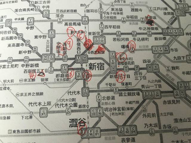 到成田机场入境过已经近10点,真怕赶不上地铁。可以买西瓜卡坐地铁,也可以购1、2、3日地铁通票。去前查好在2号航站楼1楼可以直接购买地铁通票,因为从航站楼换到航2时,工作人员刚好下班(10点),没有买到,问了咨询台,发现卖机场快线(Skyliner)的地方可以购买套票,而且还有优惠:上野--成田机场往返 +地铁通票。我们因为要在东京呆上6个整天,于是购了72小时地铁通+机场往返套票,价格5400円/人。还需要单独购买一张72小时地铁卡,问了售票员,给了一张东京地图在上面圈了2个地方:新宿、涩谷,在这里找Bic Camera 商店是可以买到的。