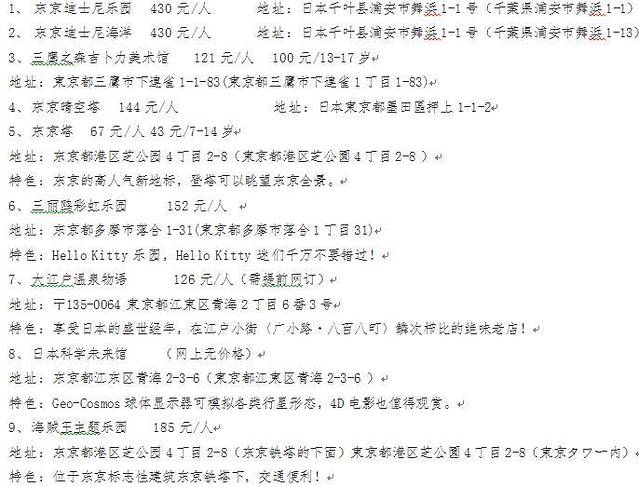东京景点、门票、地址、特色提前知晓(只是部份景点)