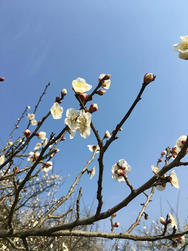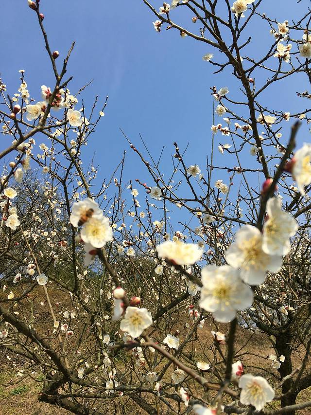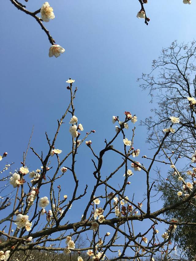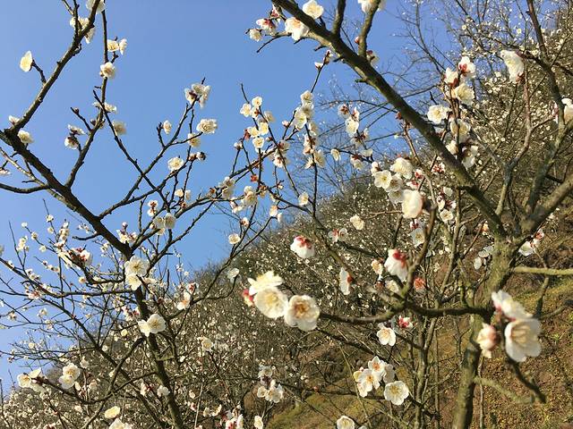 到了景点,山上漫山遍野都是白色梅花,山不高修有台阶,上去很方便,真有种人在花海中感觉,处处透着泥土的芬芳,很适合郊游地方。