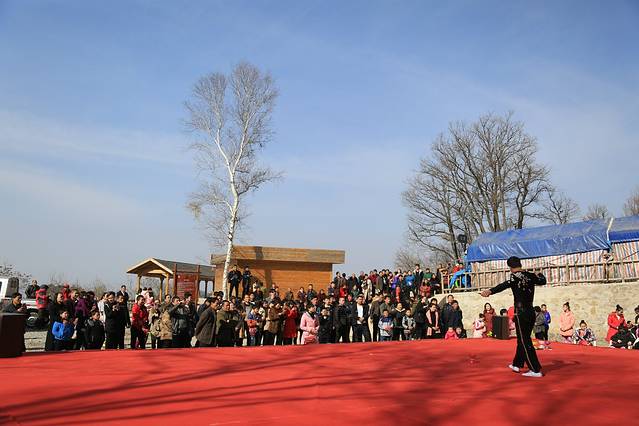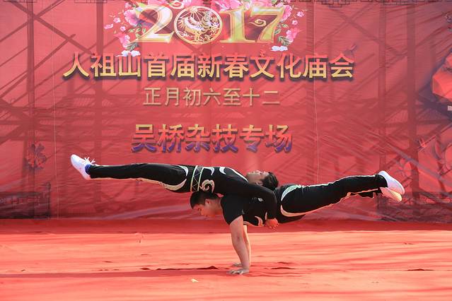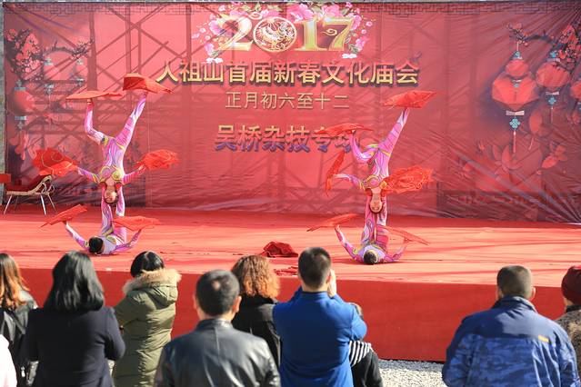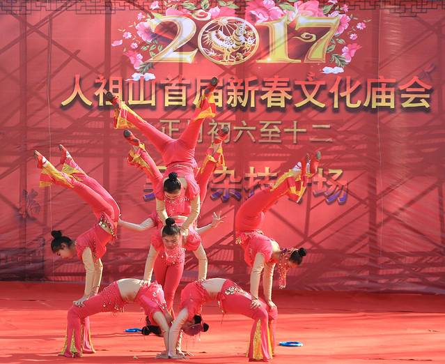 然后我们还看到了精彩的吴桥杂技表演,表演里面有空竹、转毯、女子造型、力量