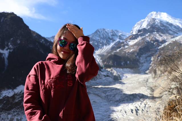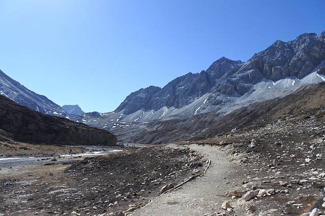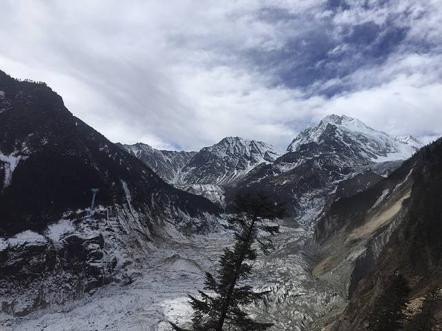 第二天,我们早早起床,本来是想坐缆车去海螺沟山顶一览全景然后徒步进入冰川的,但是到了景区才发现一天时间不够完成这两件事,所以我们只选择了徒步进入冰川,去感受一下踩在那一览无余的冰川上是什么感觉。