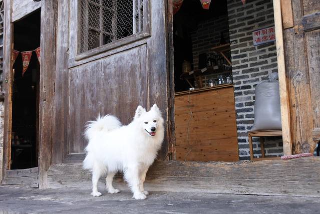 磨西古镇看到一只卖萌的萨摩耶