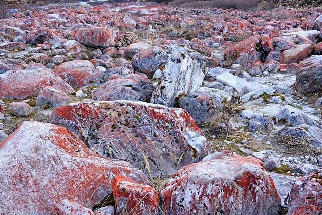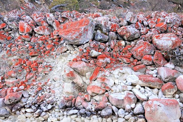 从海螺沟下来我们为了去看红石滩,走上了一条泥泞小道,70公里开了五个半小时。全部都是坑坑洼洼的小路,小车过去真的是很困难的。这是一条从海螺沟到康定没有开发正在修建的路,门口有人收100元管理费就会让过去。不过路况真的不好,但是沿途的美景确实美不胜收!