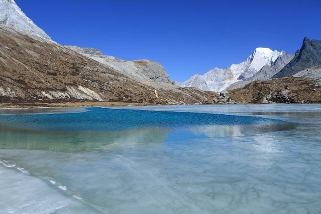 冬天的稻城亚丁或许在太多人眼里是没有什么看的,她不如秋天那么多彩绚烂,也不如夏天那么凉爽宜人,可是我就是喜欢冬天的稻城亚丁,一路上的萧条瑟黄让人清楚的感受到了来自川西应有的景象。而结冰的牛奶海、五色海,更是无法言语的美。每当有人问我稻城的冬天有什么好玩的,我就会回答他你踩过结冰的五色海、牛奶海吗?我踩过!