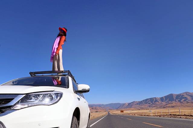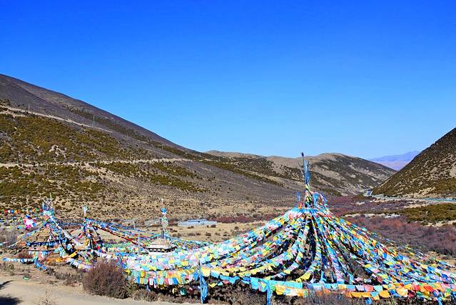 第六天,从稻城开始往回走,延318国道一路上都是风景。很多人说冬天的318没有什么看的,而我觉得蓝天白云和金黄色的荒草更般配!