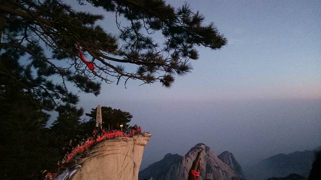 9、月夜的华山,自然有其朦胧和峻秀的独特结合,但千万不要一边观赏夜色一边走路。遇有分叉路,注意看看台阶上有没有标示,或者就随大流,起码不会迷路。