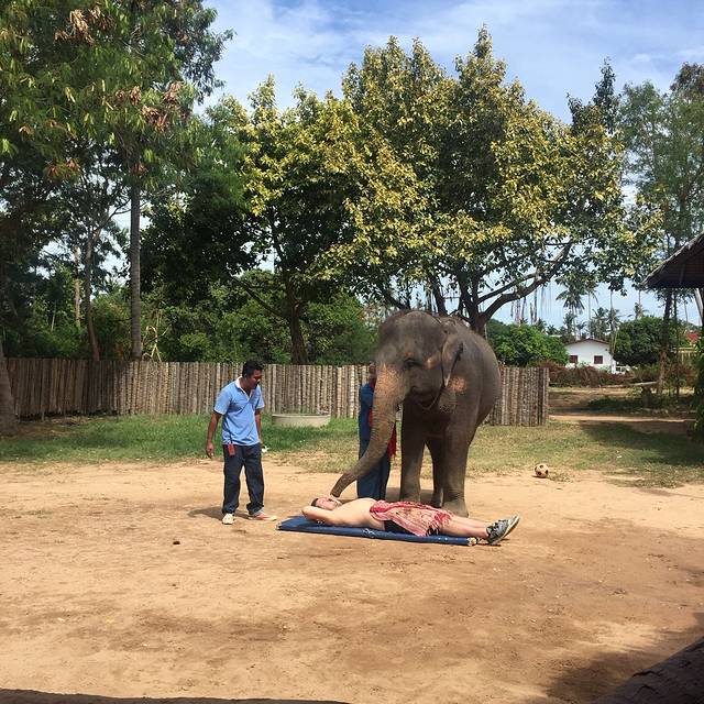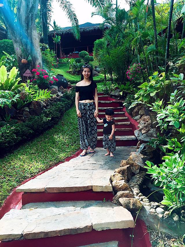 关于这次Spa的体验:1、我们选的这家环境非常好,整个馆内都是被丛林包围着,接待处就是我照这张照片的山坡上,到了后,接待人员就送上了特制的冰镇饮料,因为我们没有网上订好,所以只有在店内选择项目,我和老公都选择了一款最便宜的全身Spa,两个人大概人名币一千二左右,真心是去土豪一把的感觉2、最不爽的是我提前十分钟结束了Spa,本来是打算宸哥睡着了,我们就Spa,可是这种要提前预约的项目,我是没发控制他的睡觉时间的,再加上今天又安排了大象行程,宸哥在车上早就睡过了,所以我们就只有带着他去Spa啦!我在大堂处给宸哥买了一袋他们自制的芒果饼干,准备用饼干来诱惑他,就这样开始我们的Spa了。接待给我们安排的双人间,首先要换衣服,其实不是衣服,就是一大张裹布,然后先趴着,床的下面放了一盆花,不知道是什么名字,反正闻着让人很舒服,音乐也是很放松的节奏,一切就这样一步一步的进行着,可是大概还有二十分钟的时候宸哥就坐不住了,房间的新鲜感已不感兴趣,饼干也吃的差不多了,给我做SPA的阿姨给了他一个竹编球,他就不停的丢球,让那个阿姨去捡,阿姨她们的真实表情是,好气又好笑,关键他还过来拉那个阿姨抱他出去玩,我也是醉了,然后十分钟后就一直都要过来拉我,反正房间里可以玩的东西都玩够了,所以最后还有十分钟的时候我只能选择不做了,当我起身后,发现房间已经被宸哥弄的一片狼藉