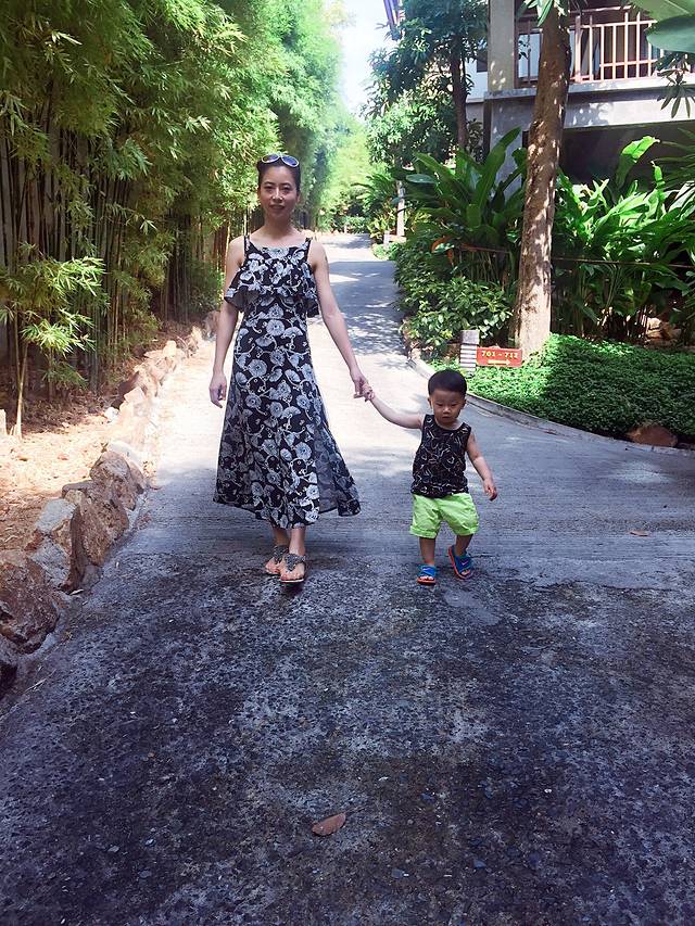 到达目的地,开始各种自拍模式,主要今天我们穿了Ci 妈我精心挑选的度假亲子装,效果还不错ba?