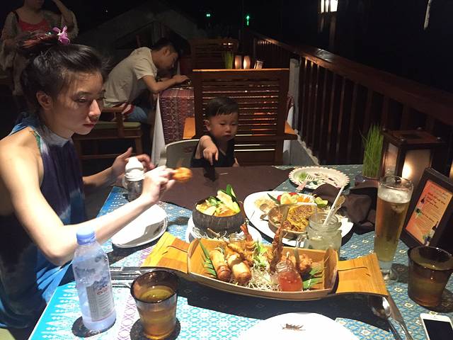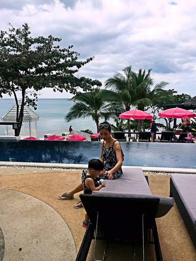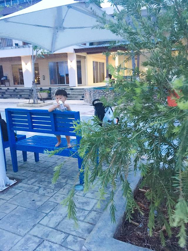回了酒店后我们去了villa那边的泳池游泳、迎着夕阳,一点也不晒了,宸哥也带上了它的挖沙工具去玩耍,一切都很舒适、也不累人,晚餐我们准备就在酒店的餐厅去大吃一顿,不得不提的是酒店餐厅的服务费真的好贵,百分之十啊!比起大排档,其实味道都差不多,只是从摆盘、环境、干净卫生这方面确实是无法比较,地道的泰式口味,连不怎么喜欢吃泰餐的老公都爱上了冬阴功!还有就是顺便说一下,我们入住酒店的时候送了几张优惠劵,包括SPA、餐厅都有,结果当天去结账的时候拿出来才发现上面是有时间限制的,当时我们已经错过了,所以提醒下亲们也要注意这点哦!