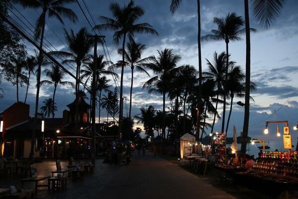 黄昏时分,打开门就能看见远处拉迈沙滩的灯光闪闪