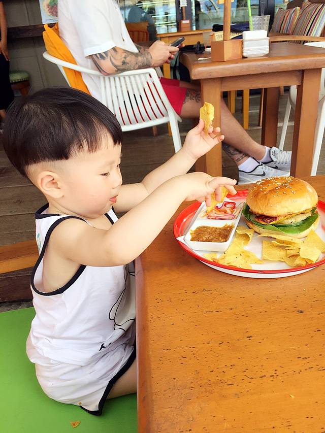 宸哥在这里学会了蘸碟子,像小大人一样把玉米片放进花生酱里蘸呀蘸,真的太萌萌哒