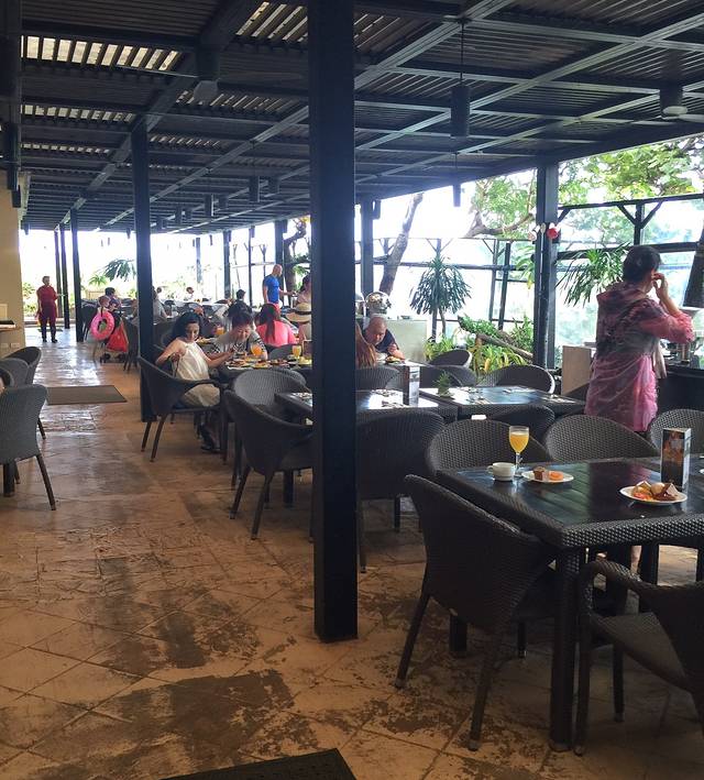 详细介绍一下我们住的酒店高尔夫,真是相当大呀!大堂,房间,餐厅,泳池,每个地方都需要坐车,但是不用担心,非常方便,酒店每个地方都有工作人员,都非常热情,服务特别特别好,比如早上我们要去吃早饭,出了楼,跟工作人员说we want to have breakfast,他就立刻用对讲机叫车过来,只需一分钟,去哪都可以。就是去dmall只有整点发车,例如九点,十点,十一点,从dmall回来是整点的十分,例如九点十分,十点十分。酒店的自助早餐非常不错,每天会换换样,落地窗,看着私人海滩。