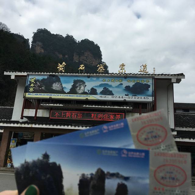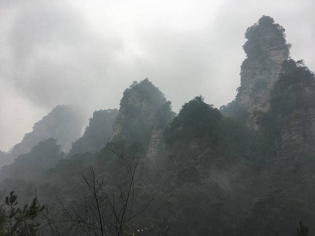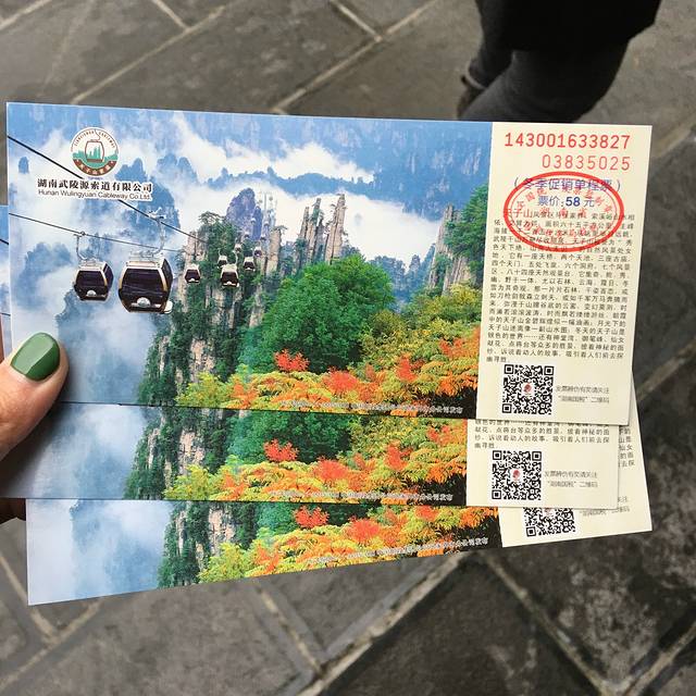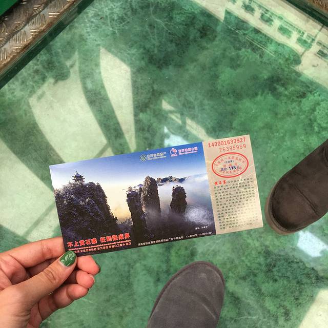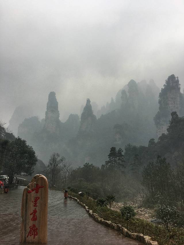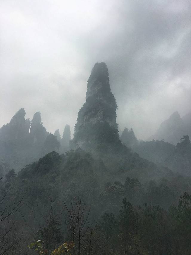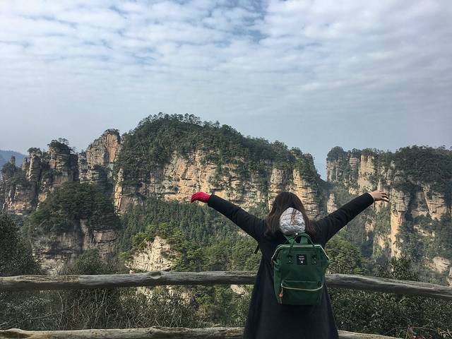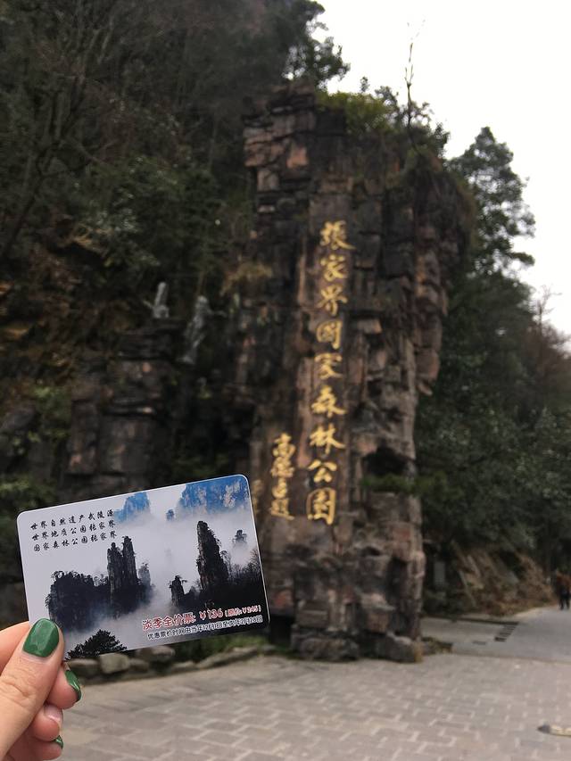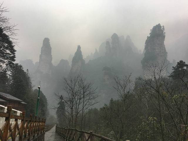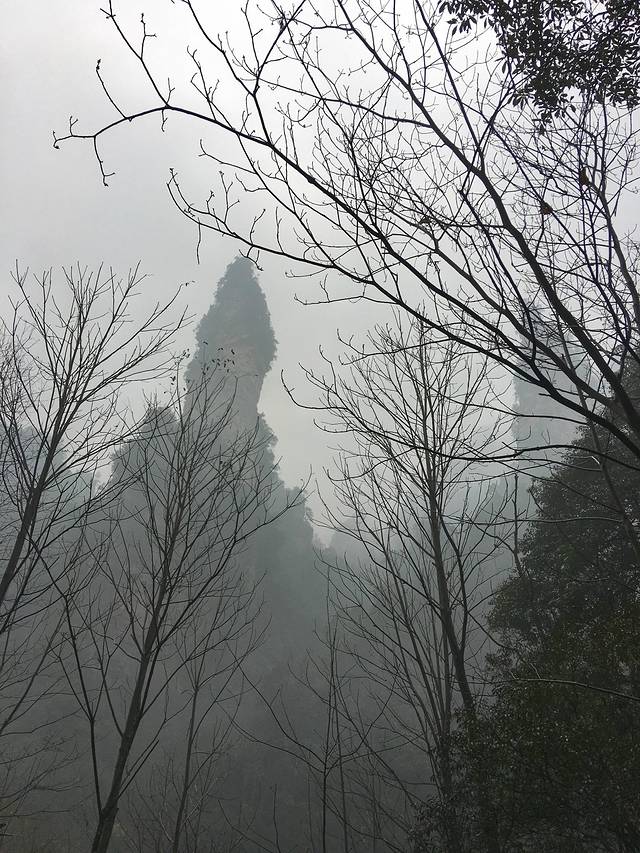 行李交给青旅的老板帮我们邮寄到第二天住的旅馆内,我们就可以背着包游玩去了,行李不论大小每件通通20块。青旅旁边就是市区中心汽车站了,直接坐中巴到森林公园门票站下车,车程约50分钟,票价12元,途径天门山(玻璃栈道的地方)由于行程比较赶,所以此行并没有去这里改成了看大峡谷的玻璃桥了~据说冬天下雪的话天门山山顶的雾凇很漂亮。不过真的很可惜我俩跟雪是真的很没缘分的…