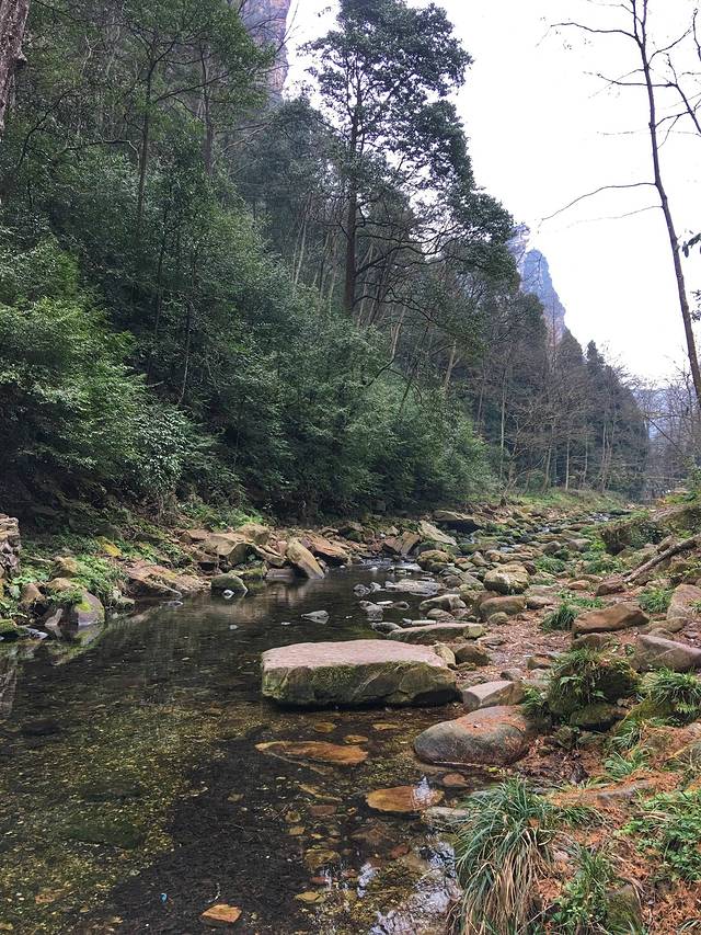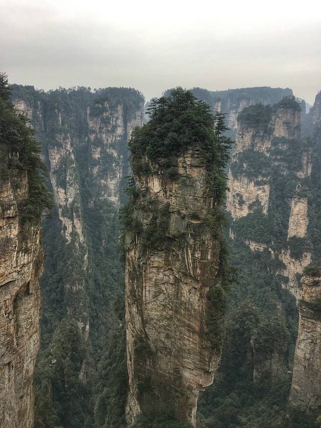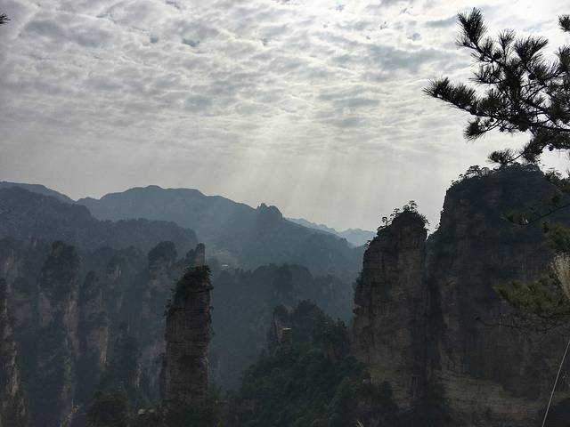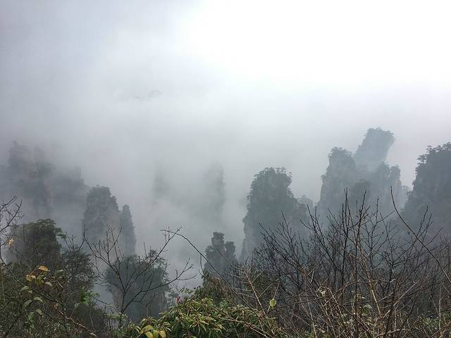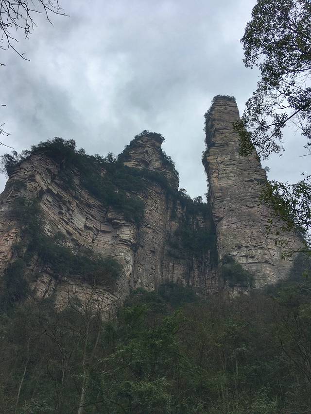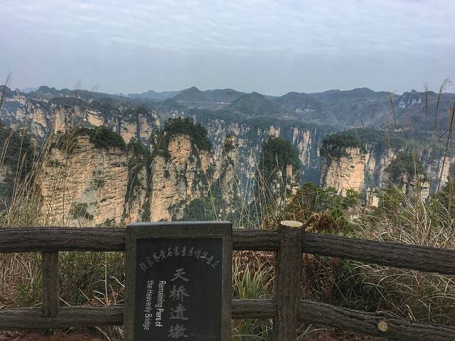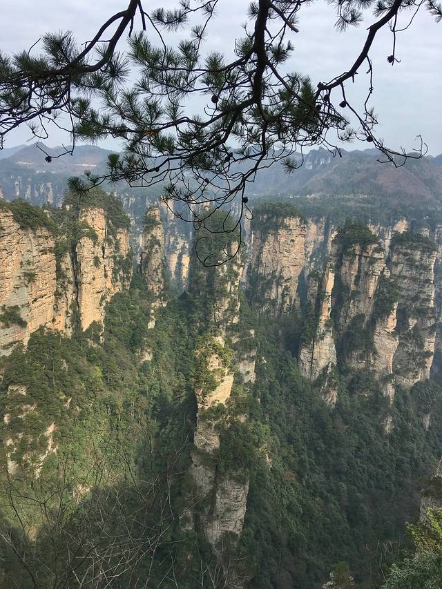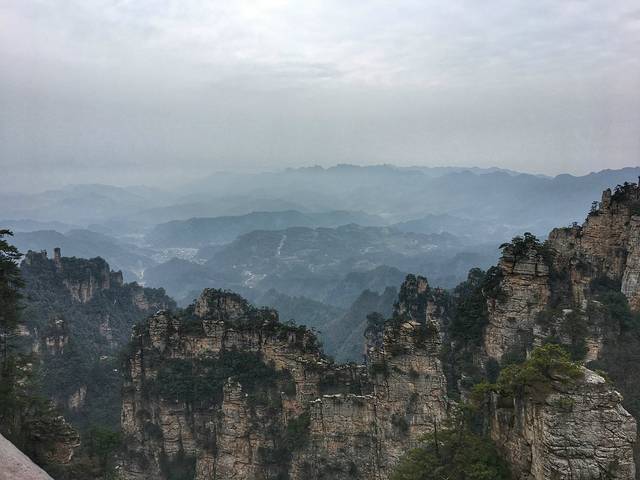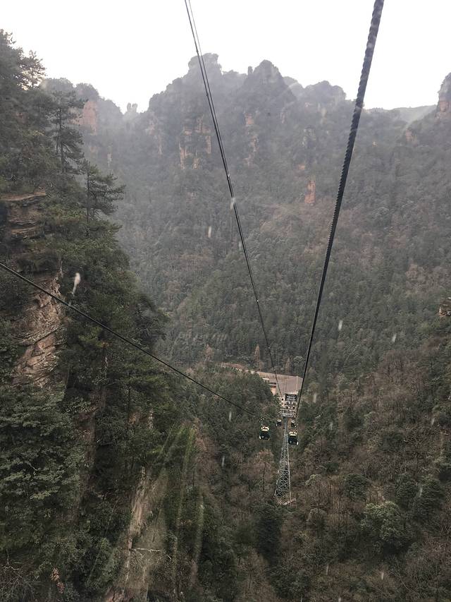 行李交给青旅的老板帮我们邮寄到第二天住的旅馆内,我们就可以背着包游玩去了,行李不论大小每件通通20块。青旅旁边就是市区中心汽车站了,直接坐中巴到森林公园门票站下车,车程约50分钟,票价12元,途径天门山(玻璃栈道的地方)由于行程比较赶,所以此行并没有去这里改成了看大峡谷的玻璃桥了~据说冬天下雪的话天门山山顶的雾凇很漂亮。不过真的很可惜我俩跟雪是真的很没缘分的…
