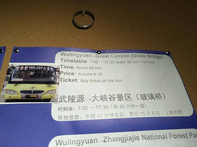 在武陵源汽车站坐直达大峡谷的中巴 30元/人 来回返程