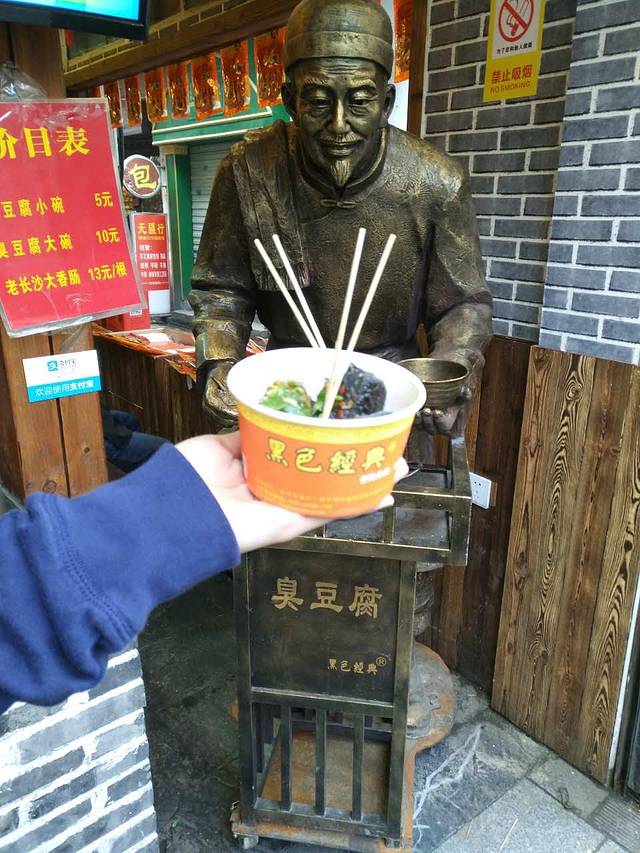 学校附近东西就是很多吃的,我们从第一师范出来后一路凭着来时的公交车路线记忆走到并找到了文庙坪。坐公交车同样是358到“长郡中学”或地铁1号线南门口站下车,走到长裙中学门口往左边走进去就是文庙坪了,里面也很多吃的。(学校附近都是很多吃的,真的在哪里都是一样的)