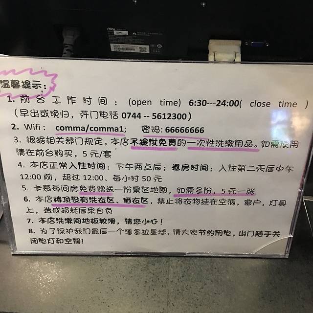 晚上十二点的飞机到,出机场后就直接打滴滴到青旅了~(其实的士和滴滴都可以,但是的士都不打表的,滴滴至少是跟着导航走的)从机场到旅馆发生了一些事情耽搁一些时间,旅店老板等我们到前还没睡觉,还和我们说了一堆张家界游玩的注意事项~第一晚就住这里了,酒店可以帮忙寄行李到你要住的地方去,毕竟张家界森林公园有很多个出入口,住在哪里游玩会相对少花一部分时间在路程上。如果要去天门山的驴友可以考虑住市区(永定区)内,去景区很近。