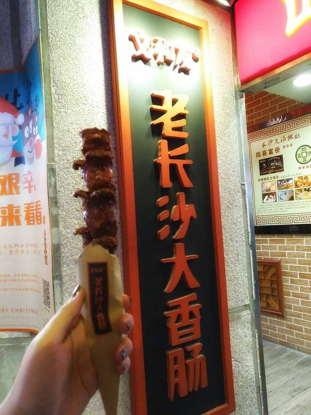13块一根,和平时的香肠吃起来不一样。这是猪肉和腊肉混合在一起做成的香肠 文和友集团真是厉害了~