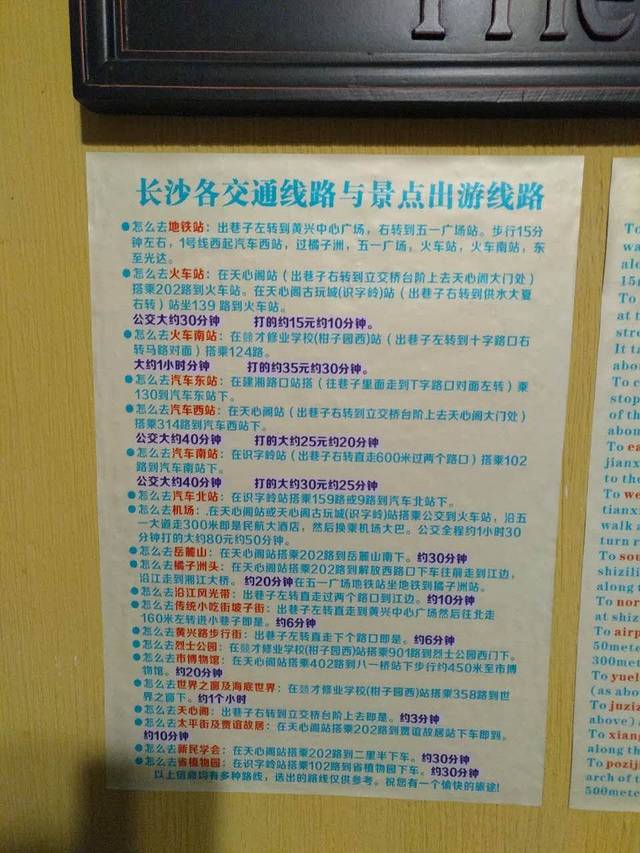 如果是坐地铁就坐到地铁1号线到黄兴广场站2号口出,往左沿着人民西路看到星巴克往前直走看到文和友龙虾馆,再往前看到化龙池酒吧街,再往前红绿灯走看到威斯顿酒店再往前走看到一辆消防车,旁边就是都正街一个牌坊,走进去就可以看到青旅了。也可以直接坐巴士到天心阁西站,下车直接看到一个石碑,直接相当于从街尾走进去更快,或者之前打的更省事~