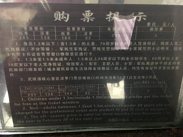 门票价格,有效期四天 坐索道那些都是另外给钱的