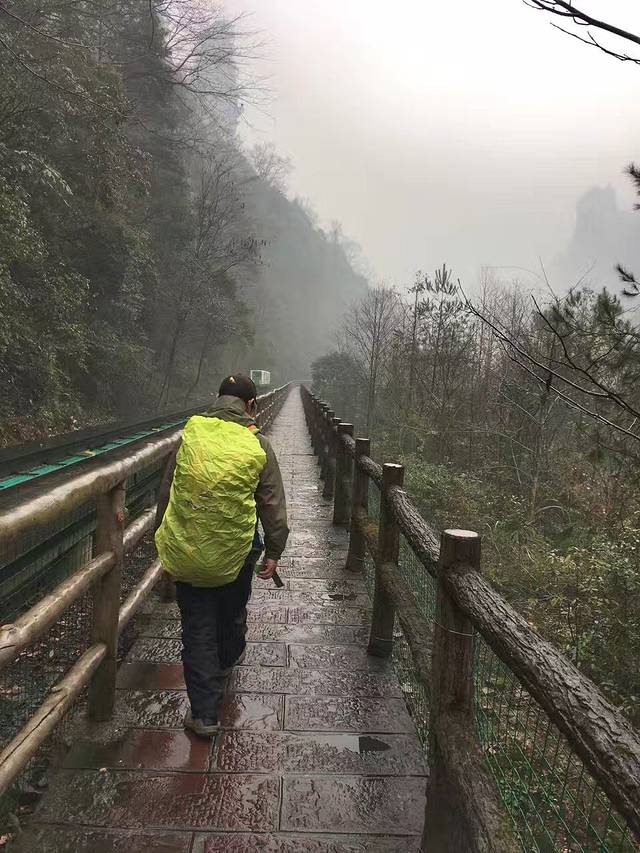 张家界因地貌大多数以山为主,加上我们去的时候刚好又下雨了(我们每次出行和雨都特别有缘分~和雪基本没缘)所以会偏湿冷,而且冬天山顶海拔都有将近两千米,山顶温度有时候会达零度,所以大羽绒服一定要备一件,还有雪地靴,手套,棉帽。雨伞也一定要带~我们去的时候一直下雨,包括后面去了长沙也下雨,雾也很大,不是PM2.5哦!保温瓶也可以带一个,剩下的冬天衣服自己看着办带就可以了,不过大多数都是爬山,所以也不用穿太多,省得热了脱没地方放还麻烦。所有的机票车票和青旅都是在去哪儿订的,我们俩一直都不爱住酒店的,秉承把钱花在玩和吃上面。