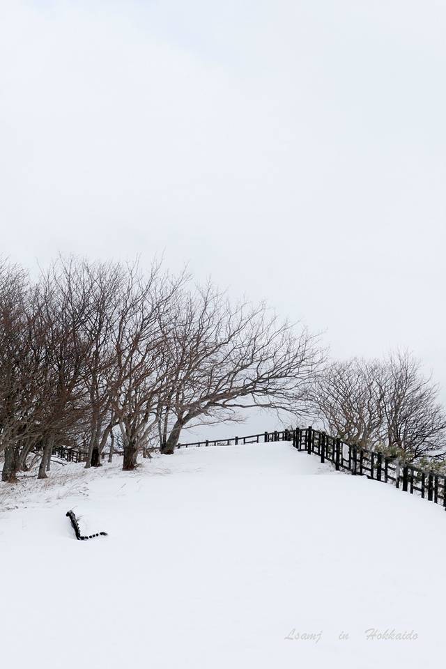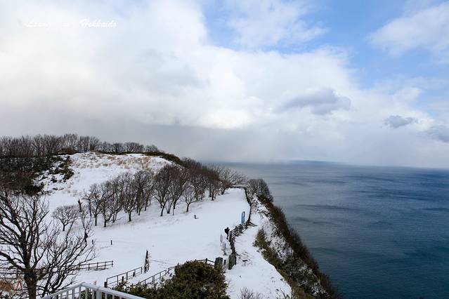 可是我们从时代村出发去地球岬的途中,天气渐渐慢慢变暗,在快接近地球岬的地方还下起了大雪。司机先生开始跟我说,可能今天看不到地球岬的圆弧了。我开始有点失落,然后心里默默祈祷天气能够好转起来。