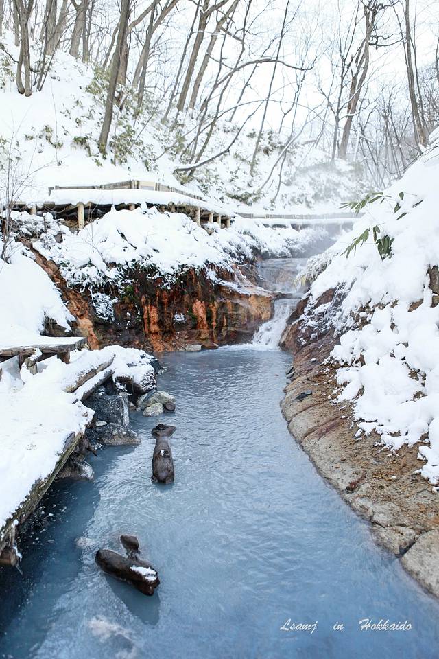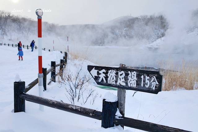 走到大汤沼的时候,雪地靴早已被打湿了大半。看见这么大的汤池,虽然知道会被烫脱皮也还是想跳进去泡个汤。