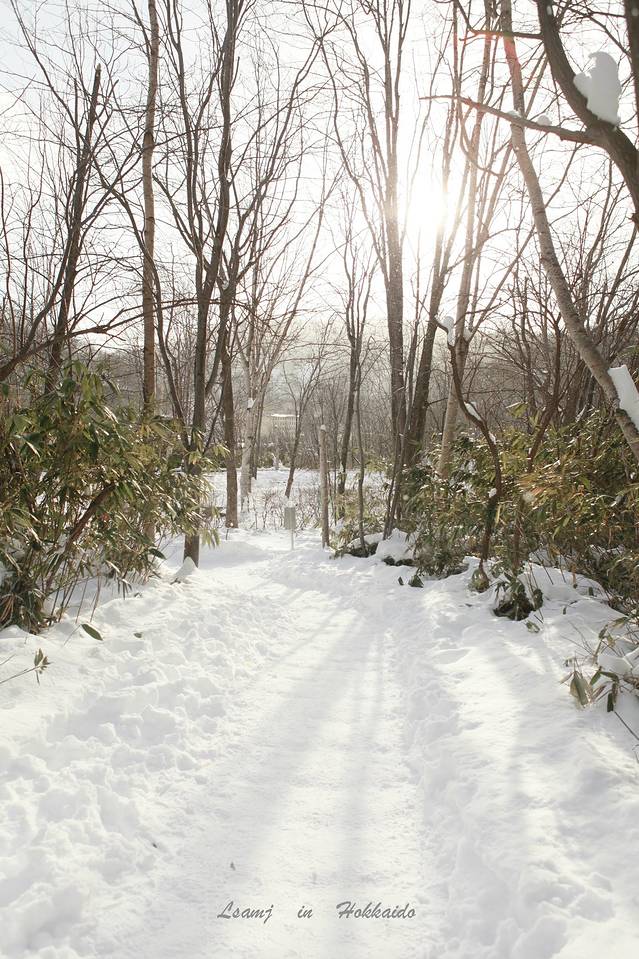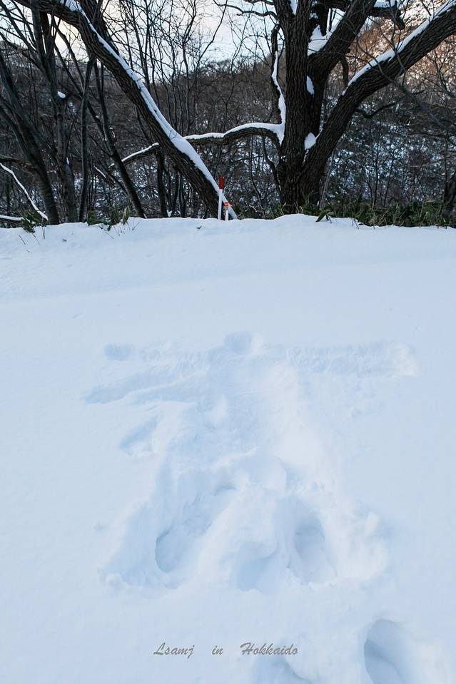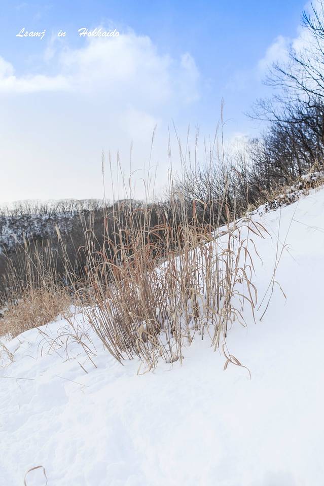 路虽然不好走,我们也都相继在坡道上摔倒,好在北海道即使是荒野丛生,也总能在白茫茫的一片中找到写色彩。