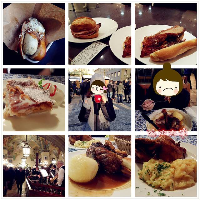 啤酒屋应该是慕尼黑最有名的了,这家皇家更是,因为离广场近。实际味道跟另外一家Augusting几乎没差,只是配料变少了,反正再多也是剩。中午我们在广场附近一家面包店吃了面包夹猪肘肉和香肠啥的,超值简直,6欧两个一顿吃得(当时)不想吃肉。到晚上又跑到啤酒屋去吃肉,本来想2人只点一份猪肘的,结果点菜的时候说错了,点了一份猪肘一份烤鸡。万幸不是两份猪肘,不然我们会哭的。烤鸡比猪肘容易解决得多,至少可以吃完。哪个女生要是自己能把一盘猪肘解决,我服!烤鸡还配着酸土豆,解腻得多。MM就是靠着酸土豆把猪肘配着吃的,可惜后面被服务员收走了(连着我吃完的烤鸡)。MM就一直想着能不能来碗醋就着猪肘 == 然后,我们还点了一个甜点,而且,我们-吃-完-了!毕竟肉和甜点属于不同空间嘛。甜点是肉桂味的苹果派配着奶油(不会甜的)底下洒着奶汁,对于爱吃甜点的我来讲是很喜欢。最后总价38.5欧,服务员收钱的时候,毫不客气地收走40欧—主动加小费的情况我还真是第一回见,不过在google评论里面见到也就不怪了。