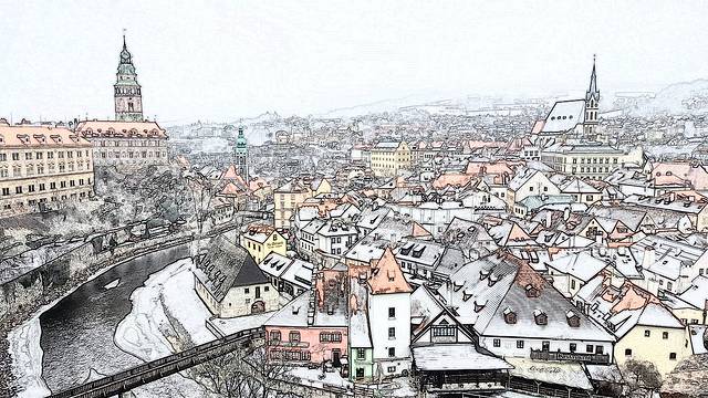在定行程时买的早上10点30的汽车票到布拉格,很便宜,1人15欧,车程4个多小时。后来临时跟MM讨论决定改到早上7点15的那班,这样不至于浪费冬天宝贵的日天时间,反正漫漫长夜可以睡个饱。改签又多花了个5欧/人,这车是Regiojet卖的DB-IC bus的票,所以要改签费,不然本身Regiojet提前2小时(好像)退票都是不收额外费用的。