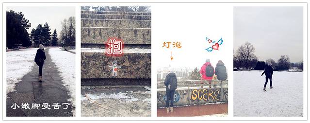 一路火车到慕尼黑满是雪景,在车里是想着下下雪牵牵手还是很浪漫的事,真在雪里走两步,就冻得不行。但凡露在外面的裸肉就刺骨地冻,为了拍照还戴的无指手套,手指头也冻到不行。还戴了耳罩(为了不乱发型),可还是不如戴个毛线帽来得暖和,虽然我笑话MM戴着个灰色毛线帽是cancer晚期到欧洲完成最后TODO-List的模样。
