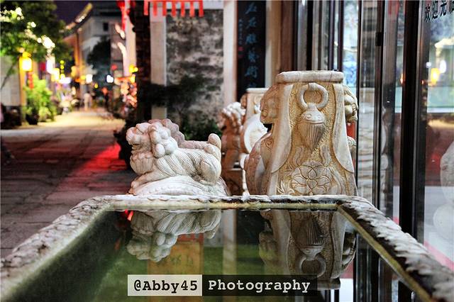 黎阳in巷主要有三条街区分别是滨江酒吧休闲街区、特色美食街区及徽文化体验街区。华灯初上之时,漫步在徽文化体验街区,古老的石狮子,像是时光的见证者。