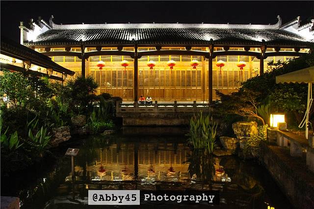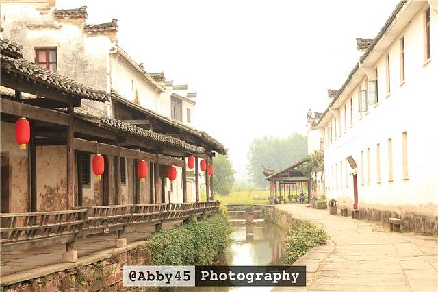 对于个人而言,最爱这种美人靠的长廊,沿溪而建。红灯笼,旧木廊,远处绿树配白墙,写意的氛围,岁月静好的模样。