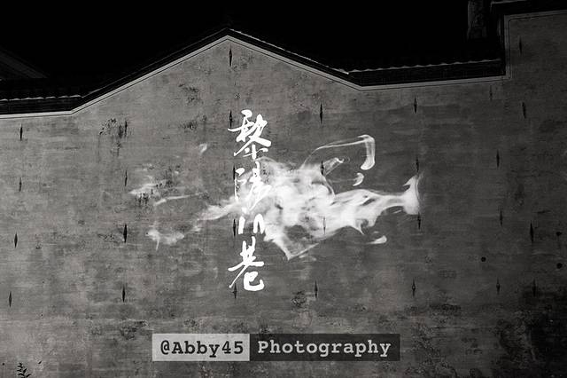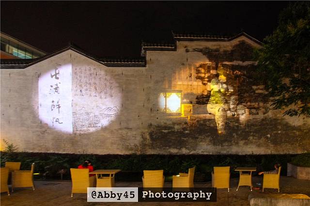 在巷弄的溪流边,白墙上有特殊的光影动画在诉说着徽州的故事,这里的前世今生。许是因为我到的那天还是工作日,游客的身影不多,更常遇到的是周边的居民在这里纳凉。