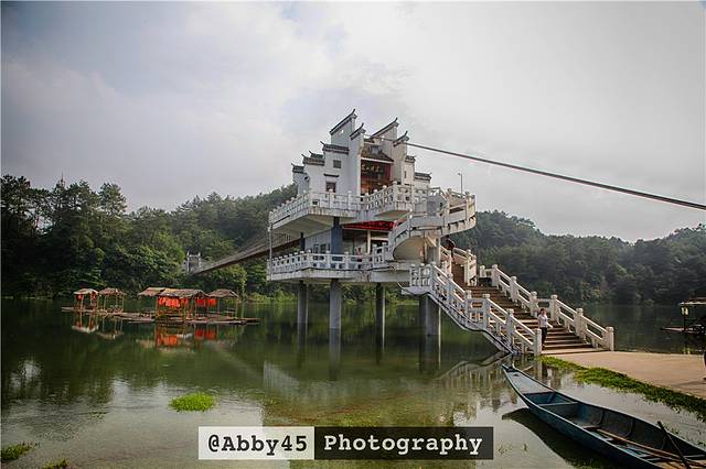 午餐后,我们终于地道北纬30度的秘境——花山谜窟。,是以新安江为纽带,连接花山、雄村两大景区,呈哑铃状形态的国家4A级风景名胜区。