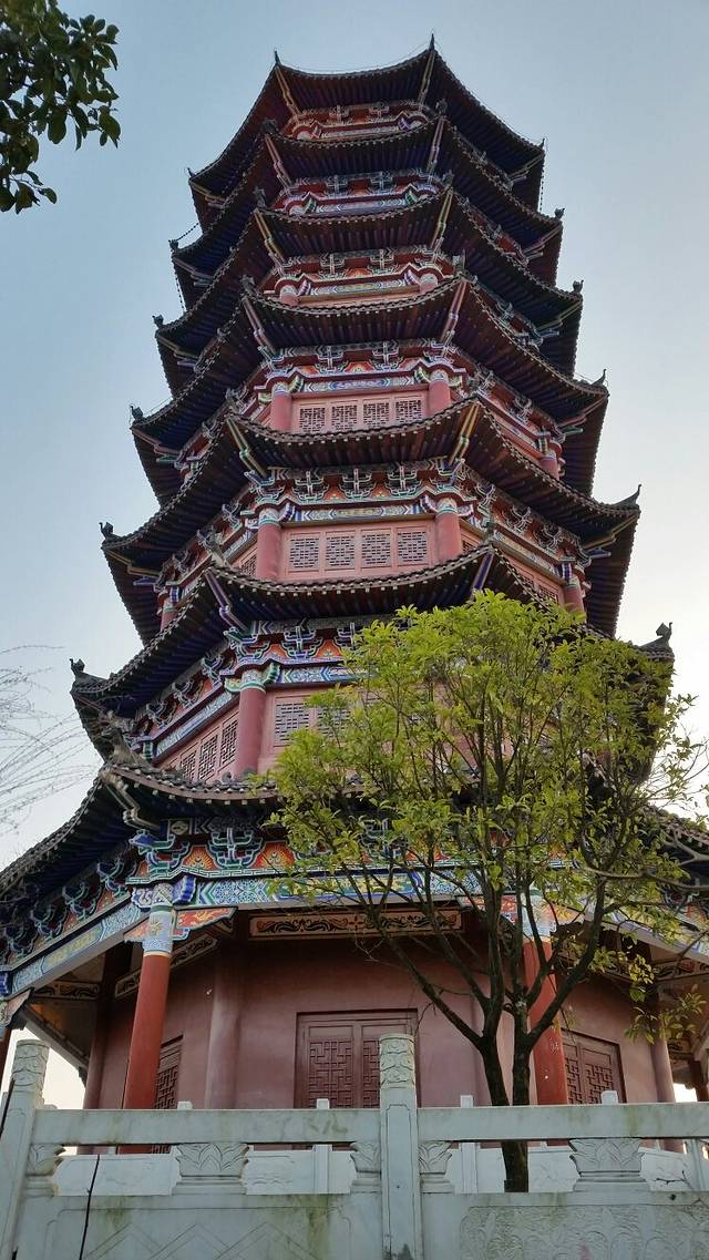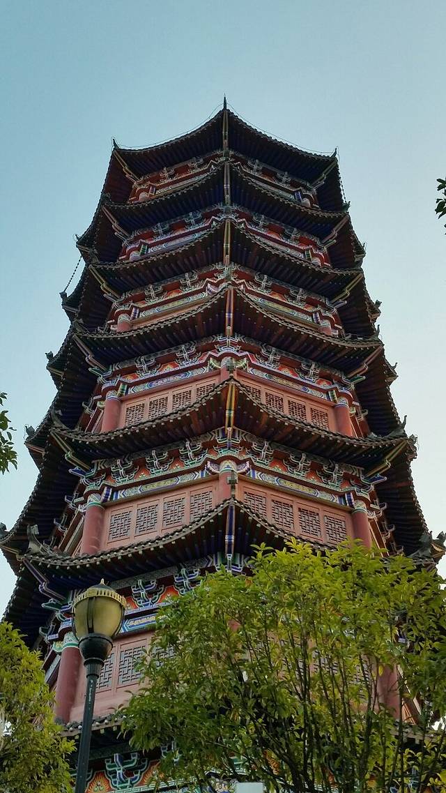 塔为砖木结构,高41.63米,其中塔基高1.65米,塔身高34.98米,宝顶高5米。塔基呈四角,洞开四处(以便游人拾级而上),其余护以汉白玉雕花栏杆。