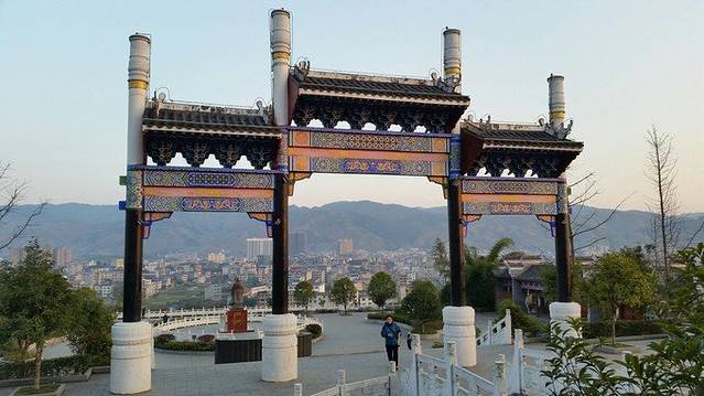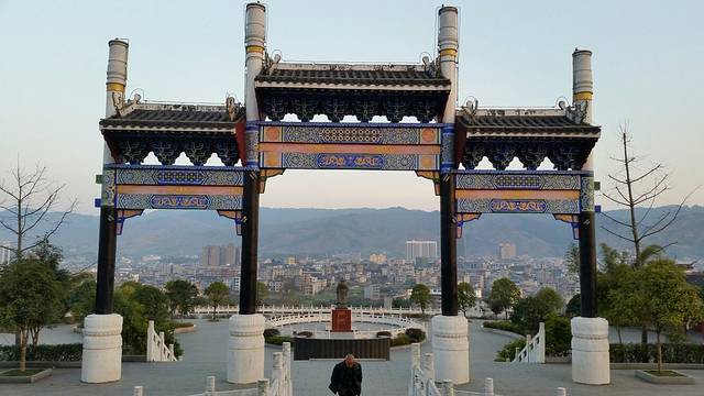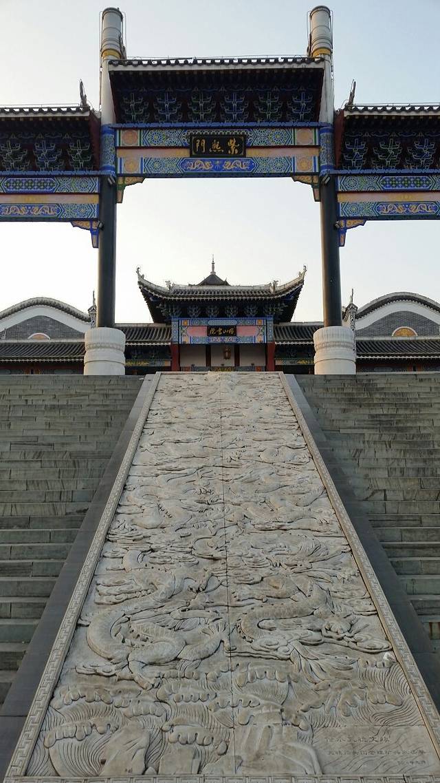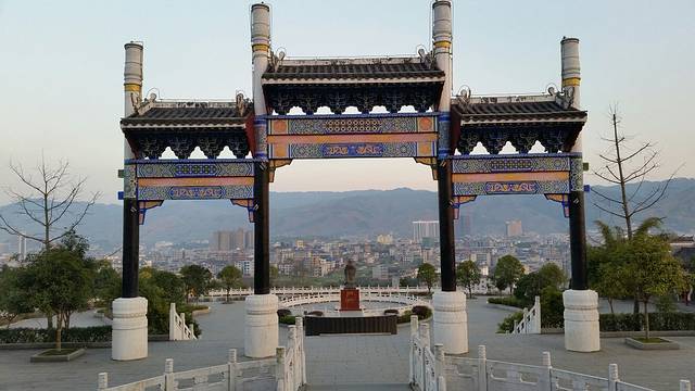 广场前有长长一排汉白玉镂图护栏,倚栏可鸟瞰县城全景——举目远眺,县城建筑群落犹巨龙盘踞,让人“荡胸生豪情”矣。